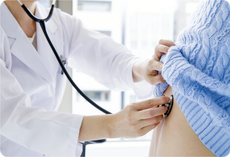 外来では、せき・痰・息切れなどの胸の症状でお困りの方に対して専門医が早い段階から対応させていただき、より良い解決策をご一緒に考えてまいります。近隣の急性期病院とも日頃から信頼関係を築いており、必要に応じて診療を仲介いたします。入院では、主に肺炎・COPDなど急性期病院で初期治療を終えられた方の自宅退院までの体力向上に必要な継続治療を行います。在宅酸素療法や在宅人工呼吸療法の導入・指導も対応させていただきます。