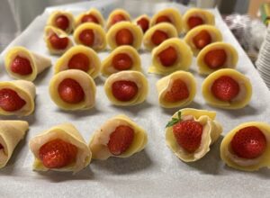 本来ふくさは求肥を使用しますが、今回は小麦粉とベーキングパウダーを使い洋風に仕上げました。