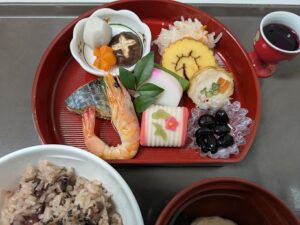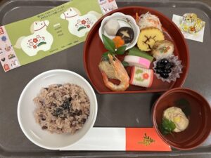 元旦の昼食は、患者さまにもお正月気分を味わっていただけるよう、