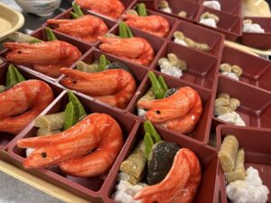 縁起の良いとされる海老や黒豆を使用し、正月らしい盛り合わせとなっています。