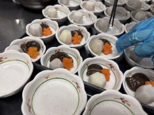 毎年恒例ですが、スタッフ総出で早朝から調理に取りかかりました。